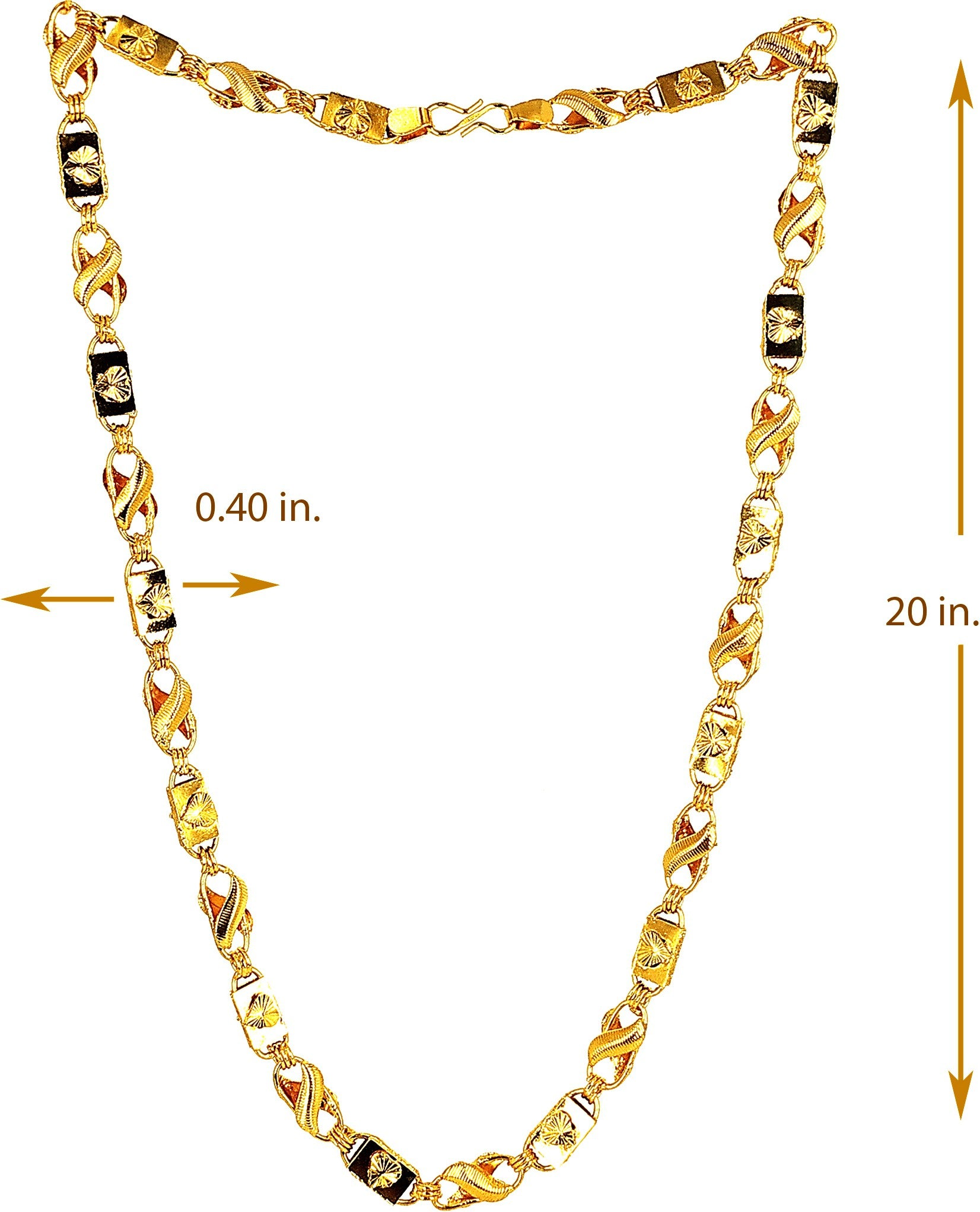 Product Name: Traditional Men's Chain Vol 8 Package Contains: 1 piece of Chain Material: Metal Color: Gold Brand: shankhraj mall Work: Gold Plated Occasion: Casual Combo: Pack of 1 Ideal for: Men Weight: 400
