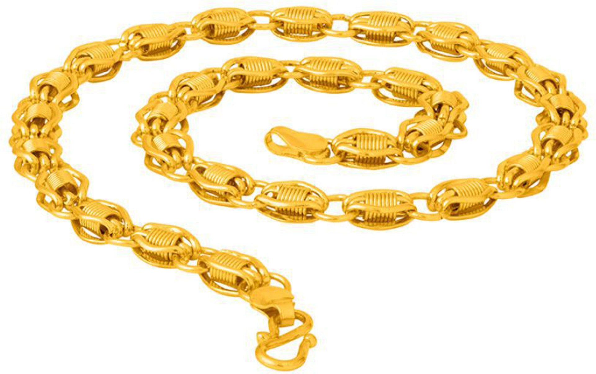 Product Name: Traditional Men's Chain Vol 8 Package Contains: 1 piece of Chain Material: Metal Color: Gold Brand: shankhraj mall Work: Gold Plated Occasion: Casual Combo: Pack of 1 Ideal for: Men Weight: 400